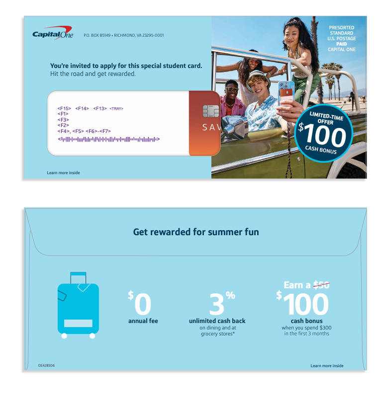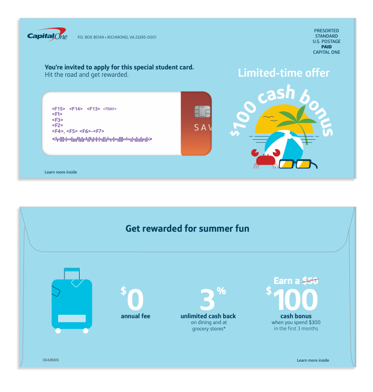 Savor Card Student Direct Mail Offer